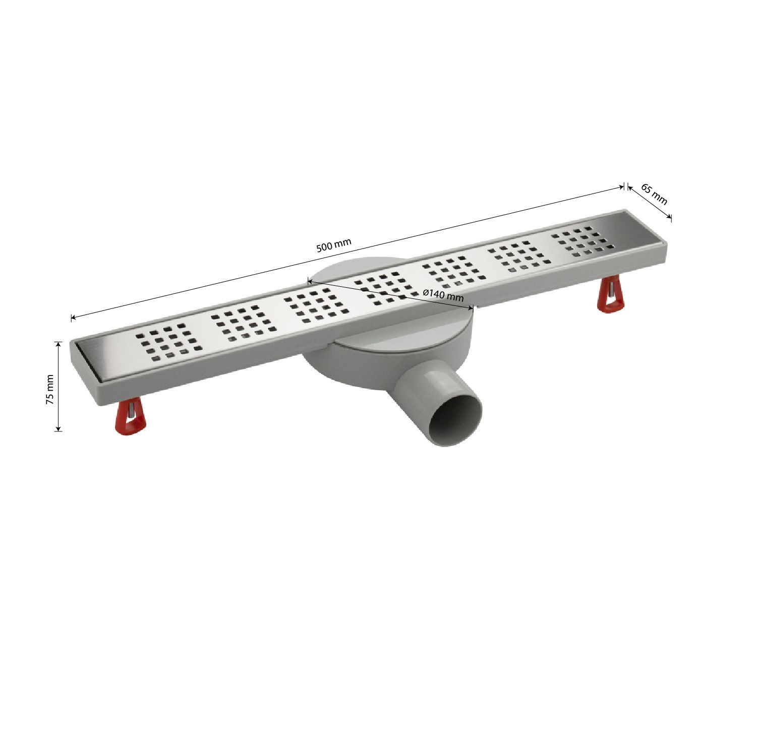 Душевой сливной трап из нержавеющей стали и пластика АБС, линейный, горизонтальный с гидрозатвором и с регулируемыми по высоте винтами, это специальный элемент сантехнических коммуникаций, предназначенный для отвода воды в систему канализации. Как правило, душевые трапы устанавливаются непосредственно в пол. Благодаря небольшим габаритам и высоте душевые трапы идеальны для установки в душевых зонах. Это важно для организации пространства, где нет возможности установить классическую ванну: в малогабаритных квартирах, студиях, совмещенных санузлах и т.п. Габаритные размеры: высота 75 мм, ширина 65 мм, длина 500 мм, выход в канализацию 50 мм. В комлекте вращающийся слив на 360°. Вес - 0,75 кг, объём - 0,00670 м3.