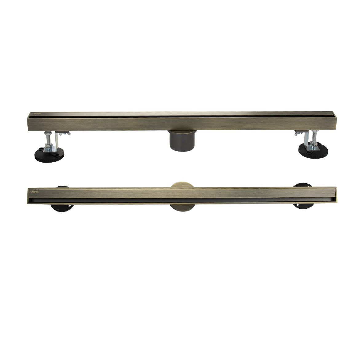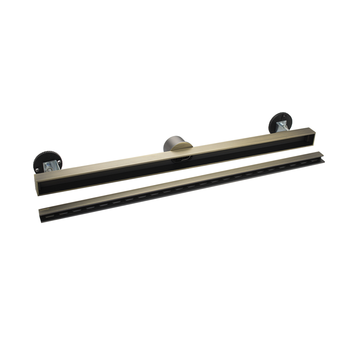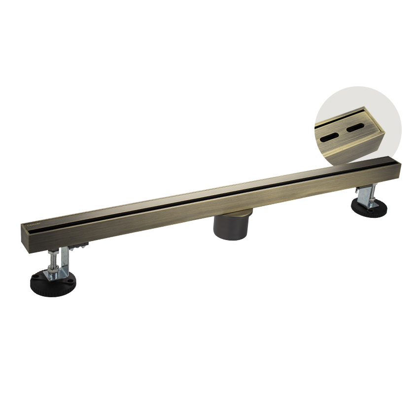 Душевой сливной трап из нержавеющей стали, линейный, вертикальный с сухим затвором, крышка двухсторонняя щелевая или с отверстиями по всей длине, цвет бронза. Это специальный элемент сантехнических коммуникаций, предназначенный для отвода воды в систему канализации. Как правило, душевые трапы устанавливаются непосредственно в пол. Благодаря небольшим габаритам и высоте душевые трапы идеальны для установки в душевых зонах. Это важно для организации пространства, где нет возможности установить классическую ванну: в малогабаритных квартирах, студиях, совмещенных санузлах и т.п. Габаритные размеры: ширина 32 мм, длина 600 мм, высота до 100 мм, выход в канализацию 50 мм. Вес - 2,4 кг, объём - 0,006 м3.