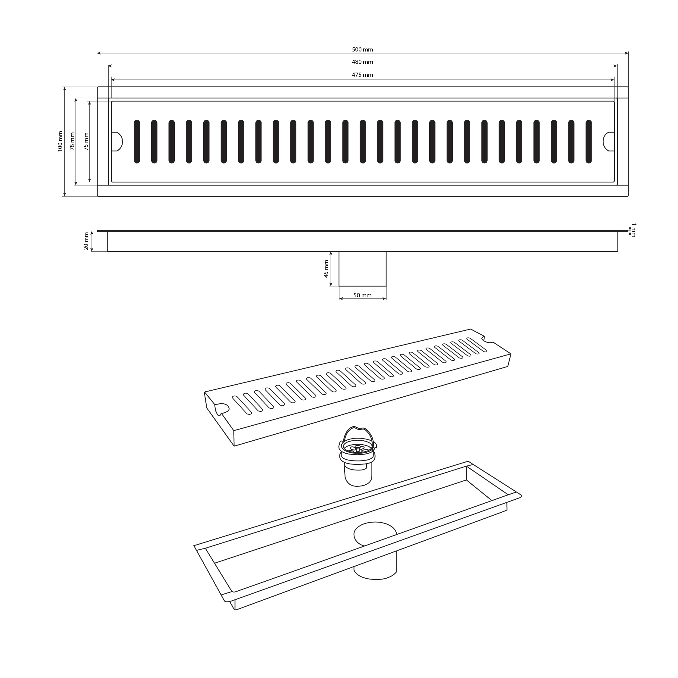 Душевой сливной трап из нержавеющей стали, линейный, вертикальный с гидрозатвором – это специальный элемент сантехнических коммуникаций, предназначенный для отвода воды в систему канализации. Как правило, душевые трапы устанавливаются непосредственно в пол. Благодаря небольшим габаритам и высоте душевые трапы идеальны для установки в душевых зонах. Это важно для организации пространства, где нет возможности установить классическую ванну: в малогабаритных квартирах, студиях, совмещенных санузлах и т.п. Габаритные размеры: высота 70 мм, ширина 100 мм, длина 500 мм, выход в канализацию 50 мм. Вес - 1,000 кг, объём - 0,00510 м3.