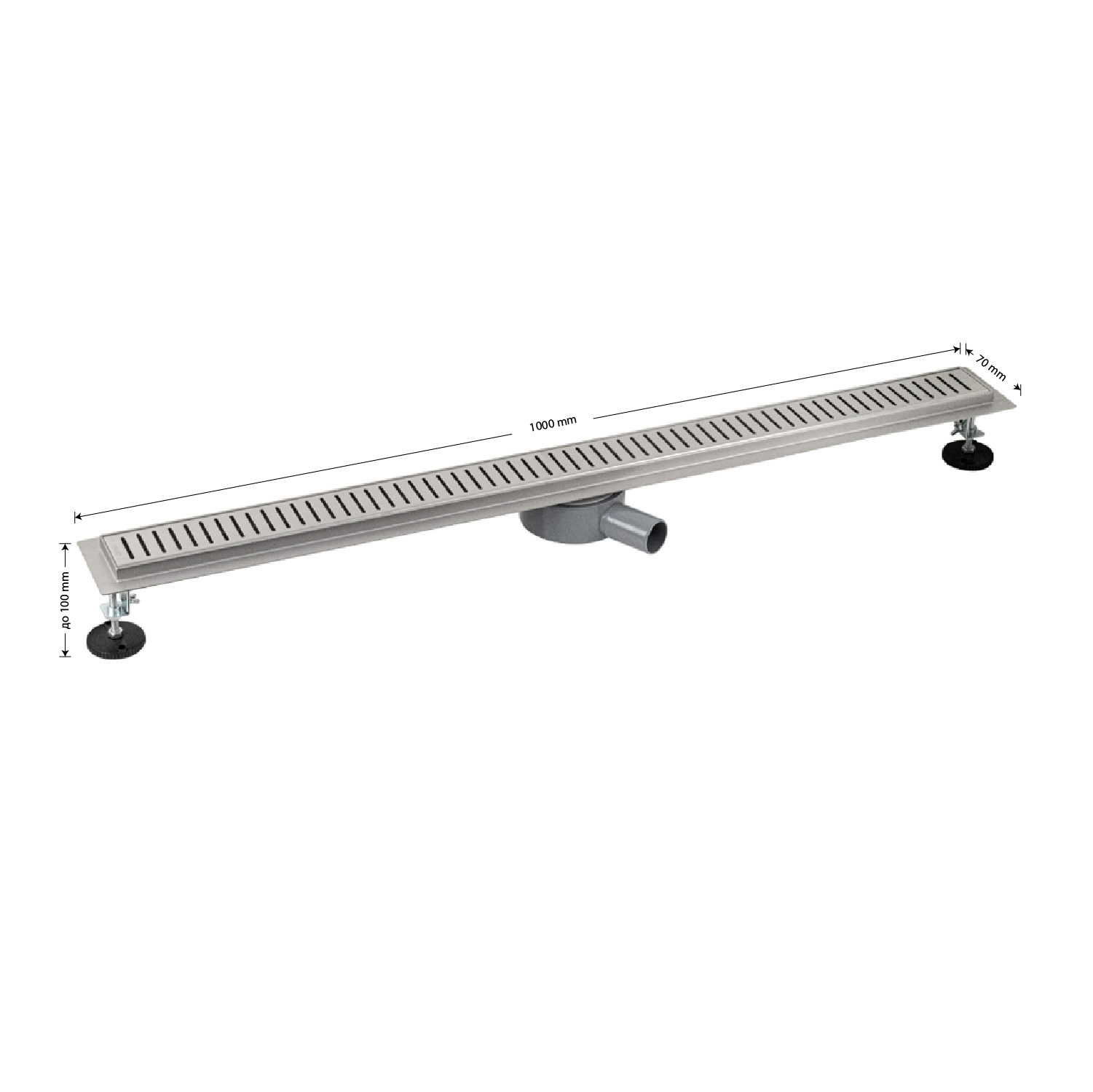 Душевой сливной трап из нержавеющей стали, линейный, горизонтальный с гидрозатвором, с регулируемыми ножками и бортиком под плитку шириной 20 мм с четырёх сторон – это специальный элемент сантехнических коммуникаций, предназначенный для отвода воды в систему канализации. Как правило, душевые трапы устанавливаются непосредственно в пол. Благодаря небольшим габаритам и высоте душевые трапы идеальны для установки в душевых зонах. Это важно для организации пространства, где нет возможности установить классическую ванну: в малогабаритных квартирах, студиях, совмещенных санузлах и т.п. Габаритные размеры: высота до 100 мм, ширина 70 мм, длина 1000 мм, выход в канализацию 50 мм. В комлекте идут регулируемые ножки высотой до 10 мм от пола, вращающийся слив на 360°. Вес - 3,800 кг, объём - 0,01506 м3.