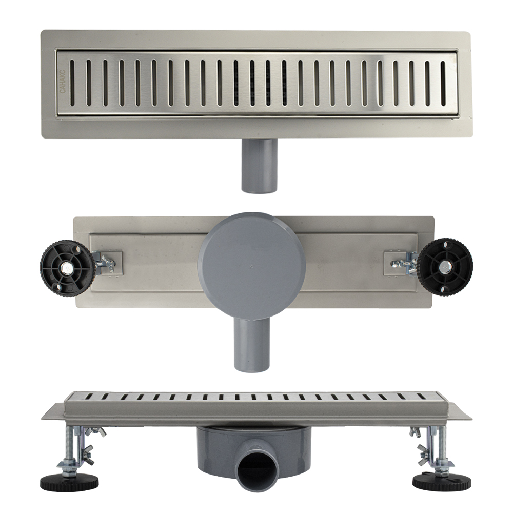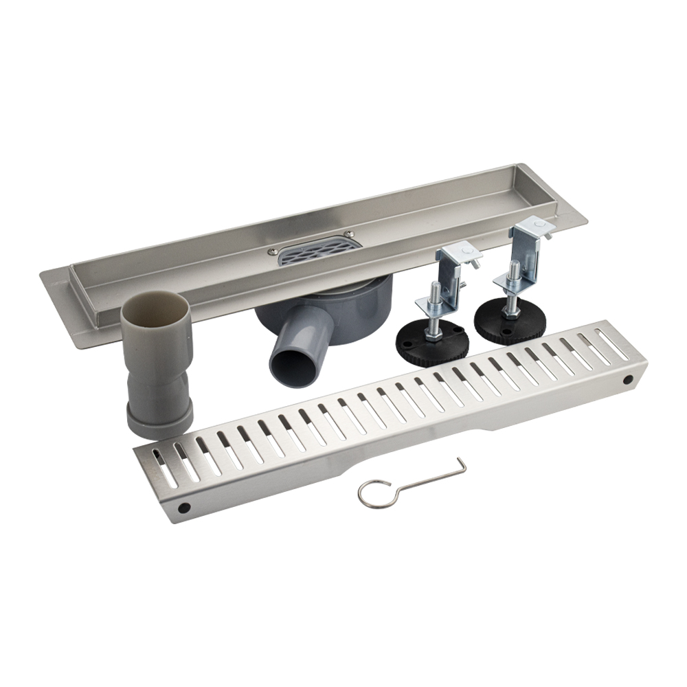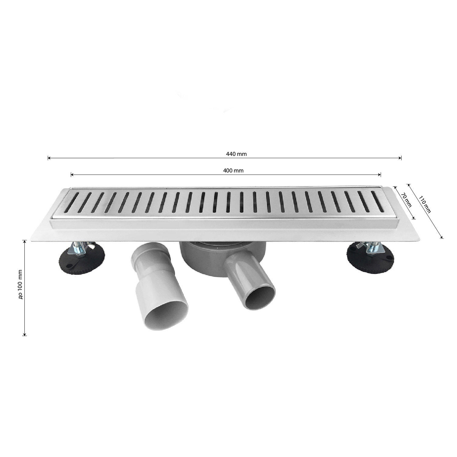 Душевой сливной трап из нержавеющей стали, линейный, горизонтальный с гидрозатвором , с регулируемыми ножками и бортиком под плитку с четырёх сторон – это специальный элемент сантехнических коммуникаций, предназначенный для отвода воды в систему канализации. Как правило, душевые трапы устанавливаются непосредственно в пол. Благодаря небольшим габаритам и высоте душевые трапы идеальны для установки в душевых зонах. Это важно для организации пространства, где нет возможности установить классическую ванну: в малогабаритных квартирах, студиях, совмещенных санузлах и т.п. Габаритные размеры: высота до 100 мм, ширина 70 мм, длина 400 мм, ширина бортика 20 мм, выход в канализацию 50 мм. В комлекте идут регулируемые ножки высотой до 10 мм от пола, вращающийся слив на 360°. Вес - 1,750 кг, объём - 0,00668 м3.