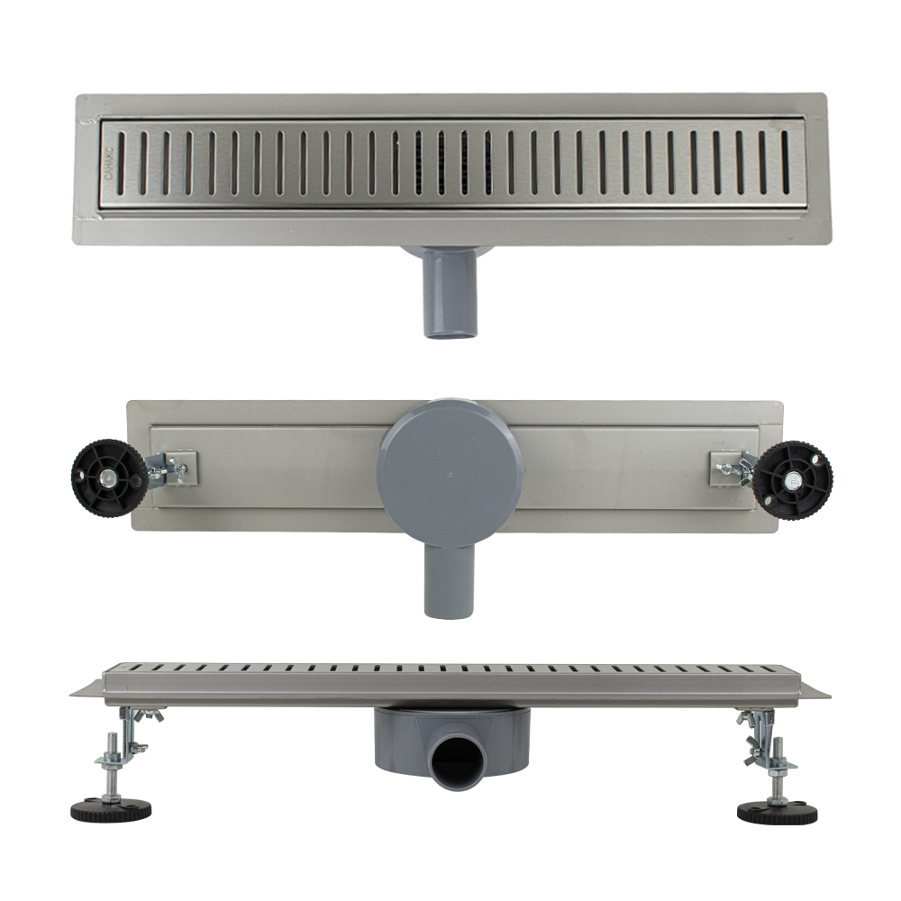Душевой сливной трап из нержавеющей стали, линейный, горизонтальный с гидрозатвором, с регулируемыми ножками и бортиком под плитку с четырёх сторон – это специальный элемент сантехнических коммуникаций, предназначенный для отвода воды в систему канализации. Как правило, душевые трапы устанавливаются непосредственно в пол. Благодаря небольшим габаритам и высоте душевые трапы идеальны для установки в душевых зонах. Это важно для организации пространства, где нет возможности установить классическую ванну: в малогабаритных квартирах, студиях, совмещенных санузлах и т.п. Габаритные размеры: высота до 100 мм, ширина 70 мм, длина 500 мм, ширина бортика 20 мм, выход в канализацию 50 мм. В комлекте идут регулируемые ножки высотой до 10 мм от пола, вращающийся слив на 360°. Вес - 2,050 кг, объём - 0,00850 м3.