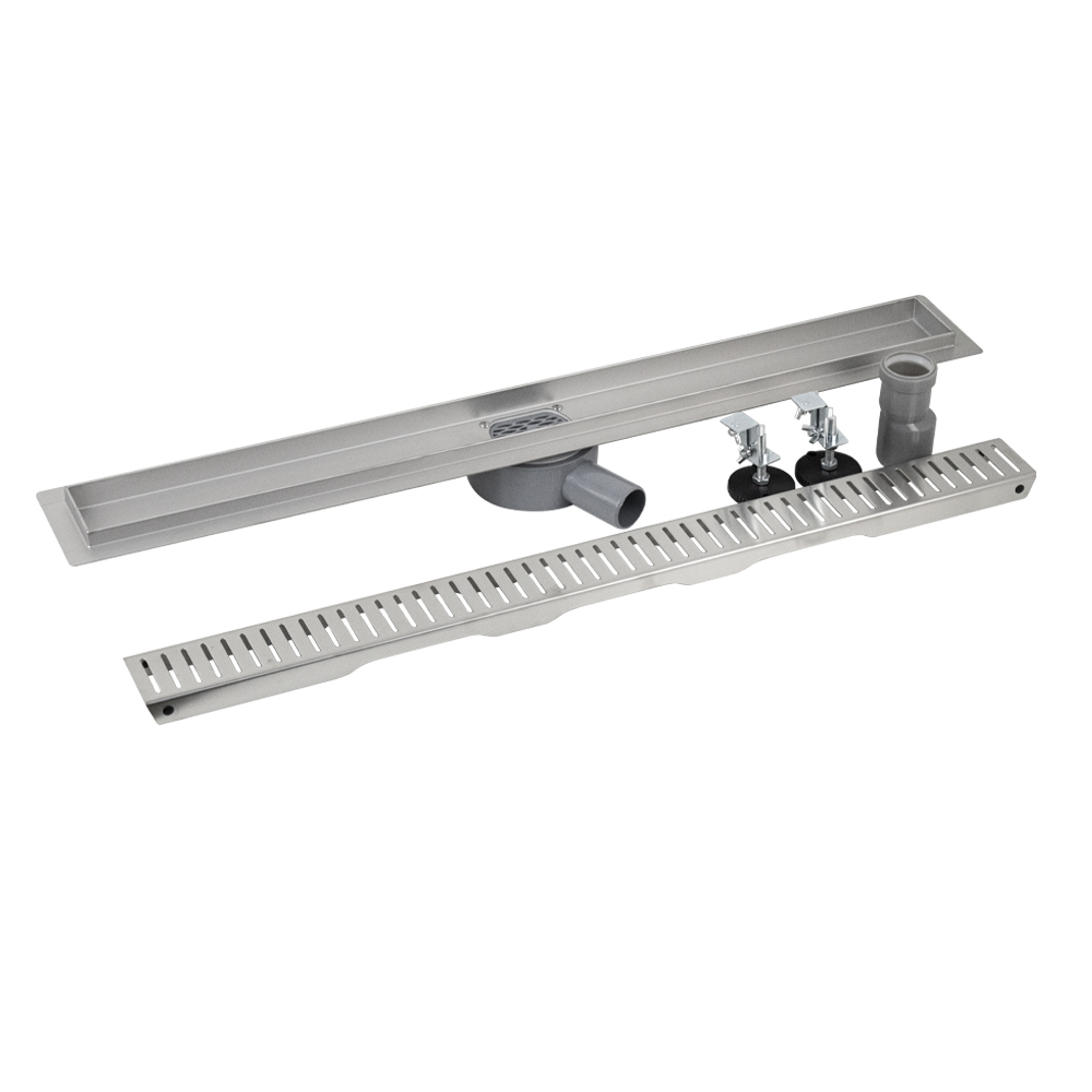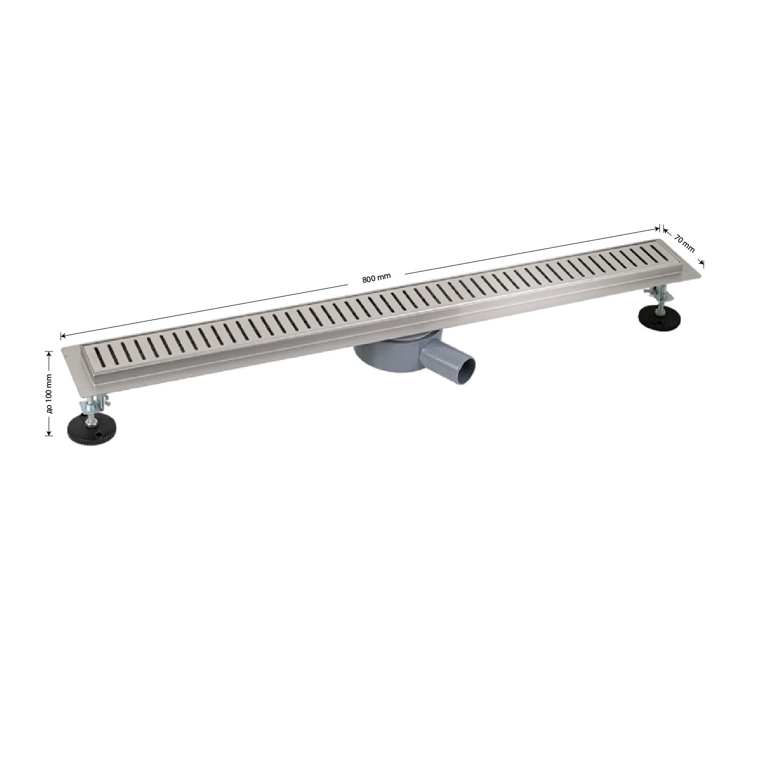 Душевой сливной трап из нержавеющей стали, линейный, горизонтальный, с гидрозатвором , с регулируемыми ножками и бортиком под плитку шириной 20 мм с четырёх сторон – это специальный элемент сантехнических коммуникаций, предназначенный для отвода воды в систему канализации. Как правило, душевые трапы устанавливаются непосредственно в пол. Благодаря небольшим габаритам и высоте душевые трапы идеальны для установки в душевых зонах. Это важно для организации пространства, где нет возможности установить классическую ванну: в малогабаритных квартирах, студиях, совмещенных санузлах и т.п. Габаритные размеры: высота до 100 мм, ширина 70 мм, длина 800 мм, выход в канализацию 50 мм. В комлекте идут регулируемые ножки высотой до 10 мм от пола, вращающийся слив на 360°. Вес - 3,200 кг, объём - 0,01227 м3