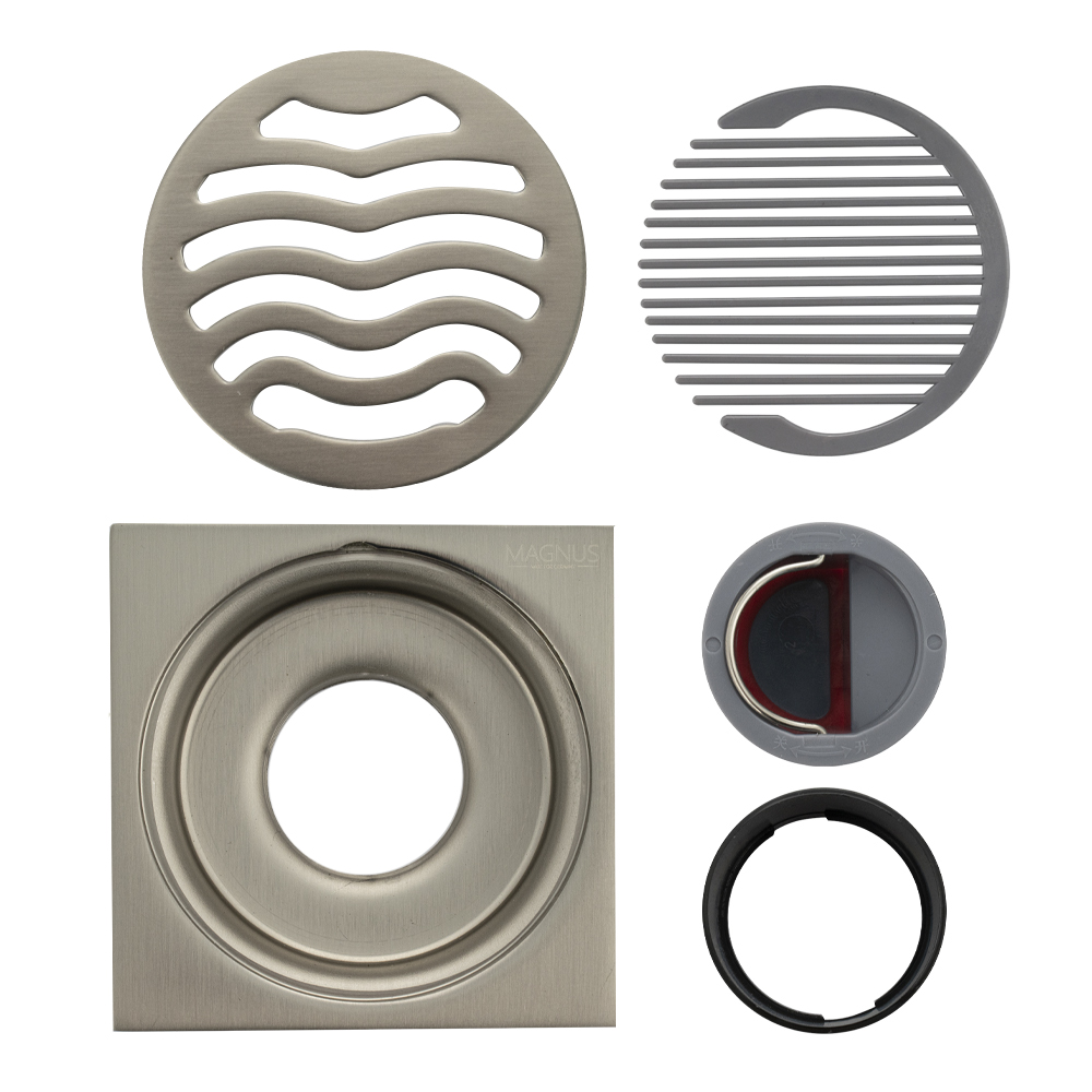 Трапы для душа "Magnus" из нержавеющей стали 201, матовый хром, имеют уникальный затвор, который работает без гидрозатвора по принципу обратного клапана. В центре системы установлен клапан, который даже при незначительном попадании воды срабатывает на слив, а при отсутствии воды плотно перекрывает потоки запахов из канализации. Душевой сливной трап цвет матовый хром с крышкой решетка, вертикальный – это специальный элемент сантехнических коммуникаций, предназначенный для отвода воды в систему канализации. Как правило, душевые трапы устанавливаются непосредственно в пол. Благодаря небольшим габаритам и высоте душевые трапы идеальны для установки в душевых зонах. Это важно для организации пространства, где нет возможности установить классическую ванну: в малогабаритных квартирах, студиях, совмещенных санузлах и т.п.Габаритные размеры: высота 60 мм, ширина 100 мм, длина 100 мм,толщина 5 мм, выход в канализацию 50 мм. Вес - 0,400 кг, объём - 0,00125 м3.