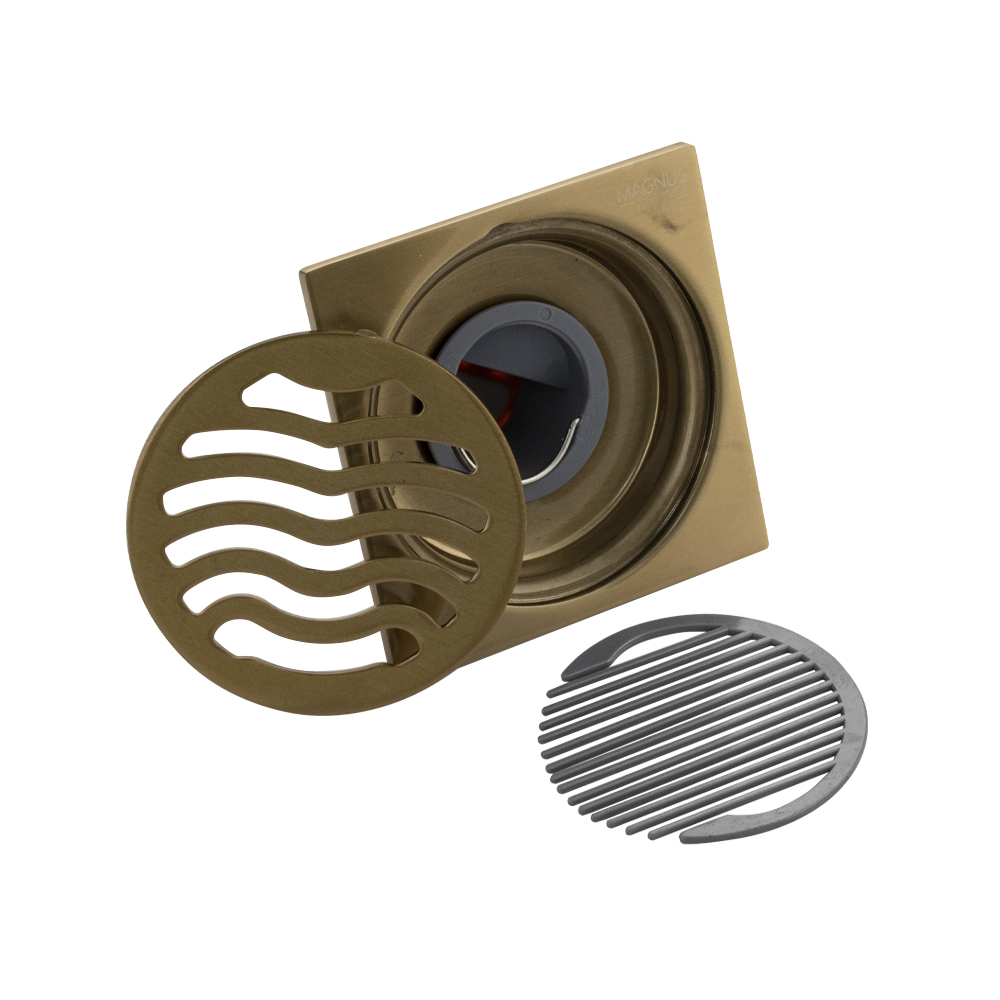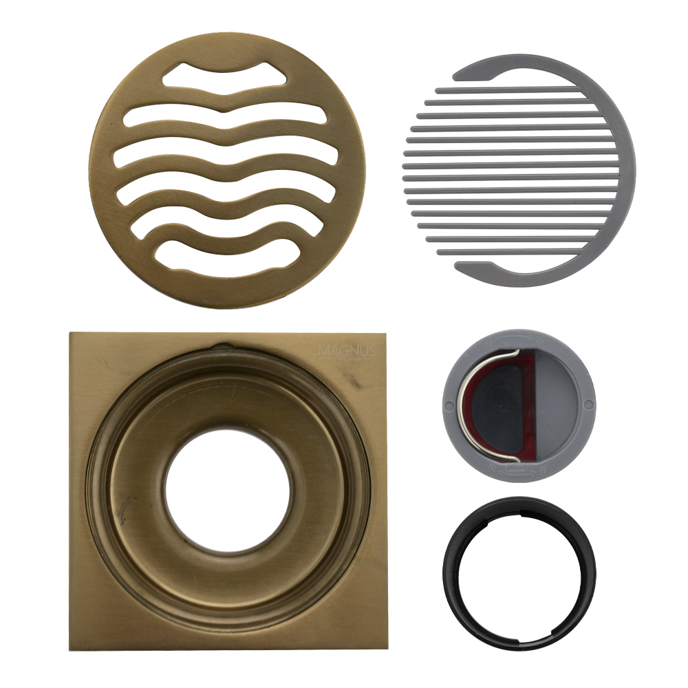 Трапы для душа "Magnus" из нержавеющей стали 201, под золото, имеют уникальный затвор, который работает без гидрозатвора по принципу обратного клапана. В центре системы установлен клапан, который даже при незначительном попадании воды срабатывает на слив, а при отсутствии воды плотно перекрывает потоки запахов из канализации. Душевой сливной трап цвет под золото с крышкой решетка, вертикальный – это специальный элемент сантехнических коммуникаций, предназначенный для отвода воды в систему канализации. Как правило, душевые трапы устанавливаются непосредственно в пол. Благодаря небольшим габаритам и высоте душевые трапы идеальны для установки в душевых зонах. Это важно для организации пространства, где нет возможности установить классическую ванну: в малогабаритных квартирах, студиях, совмещенных санузлах и т.п. Габаритные размеры: высота 60 мм, ширина 100 мм, длина 100 мм,толщина 5 мм, выход в канализацию 50 мм. Вес - 0,400 кг, объём - 0,00125 м3.