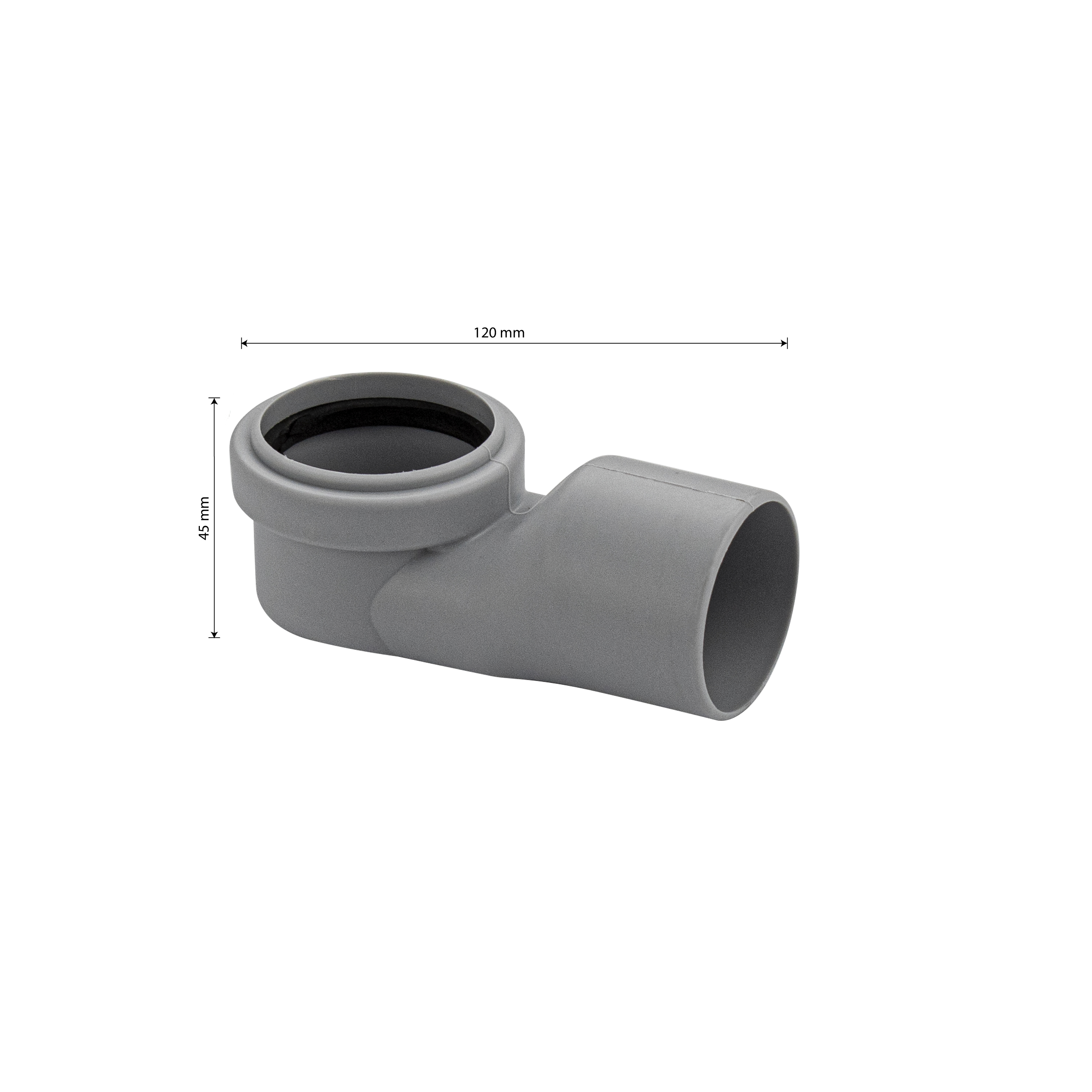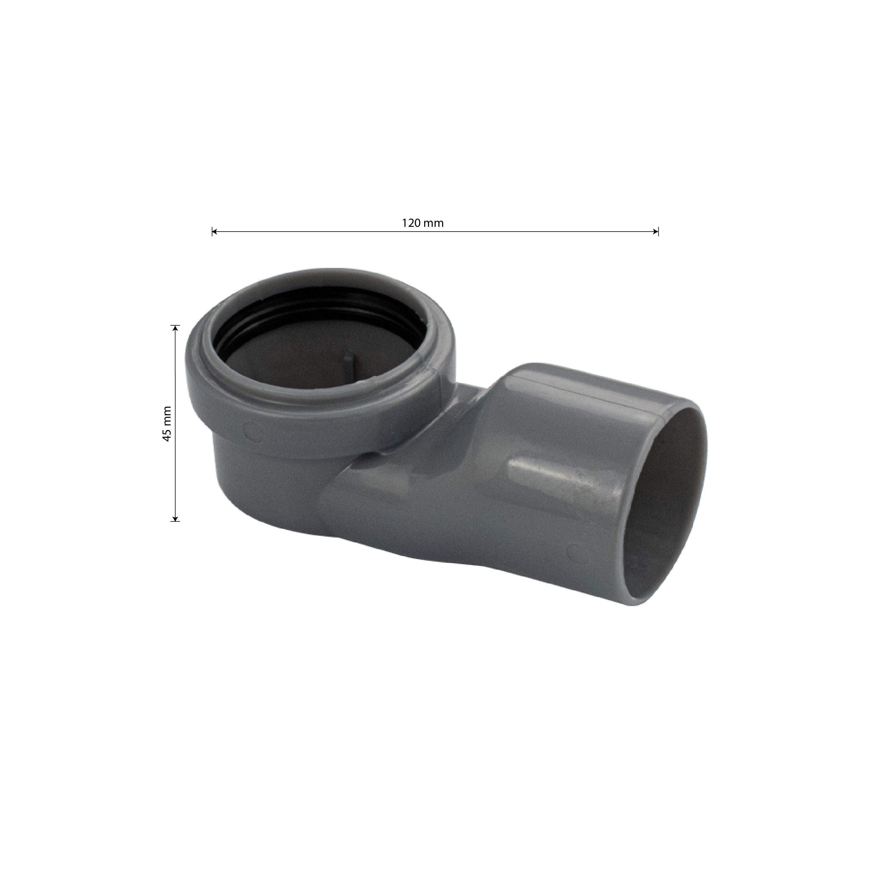 Нижняя часть трапа пластиковая для бокового подключения к канализации. С втулкой. 50 мм. Габаритнеы размеры: ширина 120 мм, высота 45 мм, глубина 65 мм.