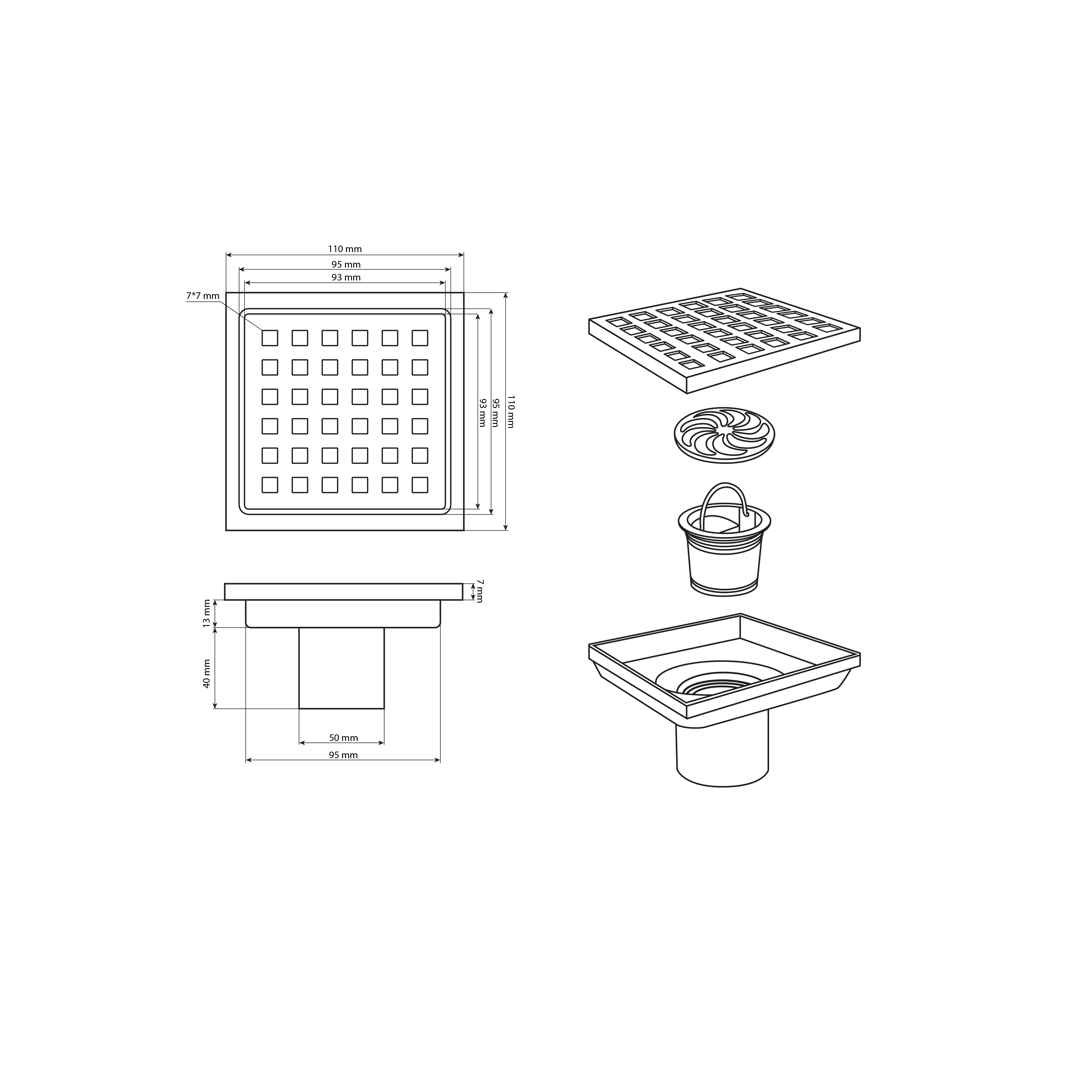 Душевой сливной трап из нержавеющей стали, вертикальный с сухим затвором. Душевой сливной трап, цвет сатин, с крышкой перфорация – это специальный элемент сантехнических коммуникаций, предназначенный для отвода воды в систему канализации. Как правило, душевые трапы устанавливаются непосредственно в пол. Благодаря небольшим габаритам и высоте душевые трапы идеальны для установки в душевых зонах. Это важно для организации пространства, где нет возможности установить классическую ванну: в малогабаритных квартирах, студиях, совмещенных санузлах и т.п. Габаритные размеры: высота мм, ширина 110 мм, длина 110 мм, толщина мм, выход в канализацию 50 мм. Вес - 0,38 кг, объём - 0,00175 м3.