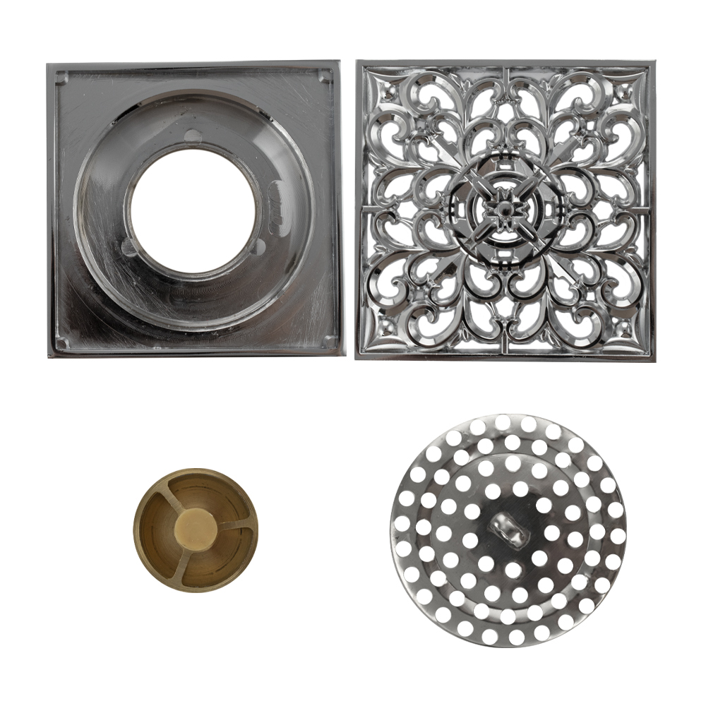 Душевой сливной трап из латуни с хромированной крышкой с декором, вертикальный с сухим затвором воды – это специальный элемент сантехнических коммуникаций, предназначенный для отвода воды в систему канализации. Как правило, душевые трапы устанавливаются непосредственно в пол. Благодаря небольшим габаритам и высоте душевые трапы идеальны для установки в душевых зонах. Это важно для организации пространства, где нет возможности установить классическую ванну: в малогабаритных квартирах, студиях, совмещенных санузлах и т.п. Габаритные размеры: высота 45 мм, ширина 100 мм, длина 100 мм, выход в канализацию 45 мм. Вес - 0,500 кг, объём - 0,00060 м3.