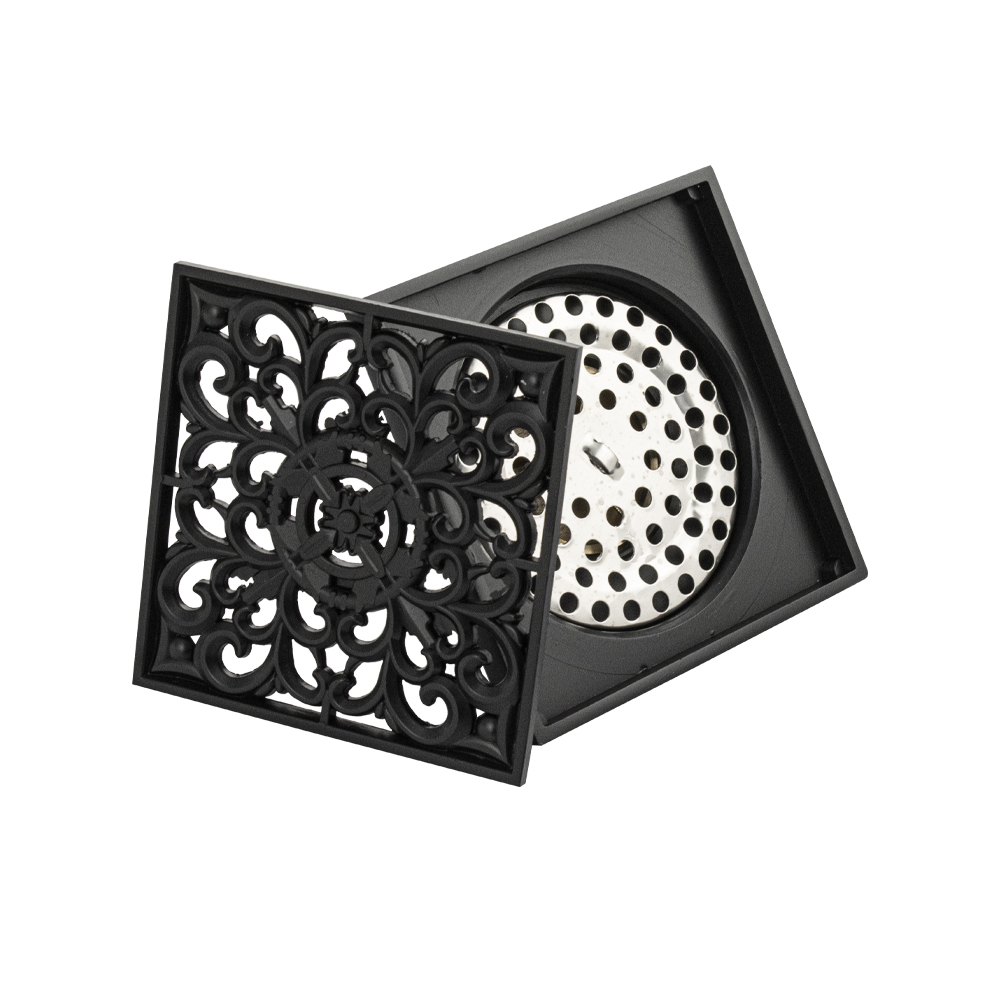 Душевой сливной трап из латуни с крышкой, с декором чёрного цвета, вертикальный, с сухим затвором воды – это специальный элемент сантехнических коммуникаций, предназначенный для отвода воды в систему канализации. Как правило, душевые трапы устанавливаются непосредственно в пол. Благодаря небольшим габаритам и высоте душевые трапы идеальны для установки в душевых зонах. Это важно для организации пространства, где нет возможности установить классическую ванну: в малогабаритных квартирах, студиях, совмещенных санузлах и т.п. Габаритные размеры: высота 45 мм, ширина 100 мм, длина 100 мм, выход в канализацию 50 мм. Вес - 0,500 кг, объём - 0,00060 м3