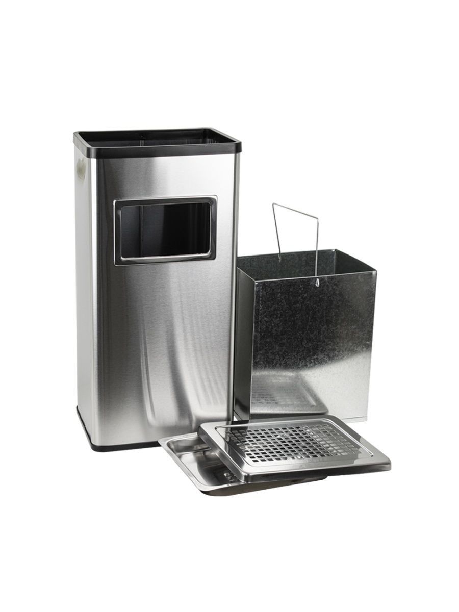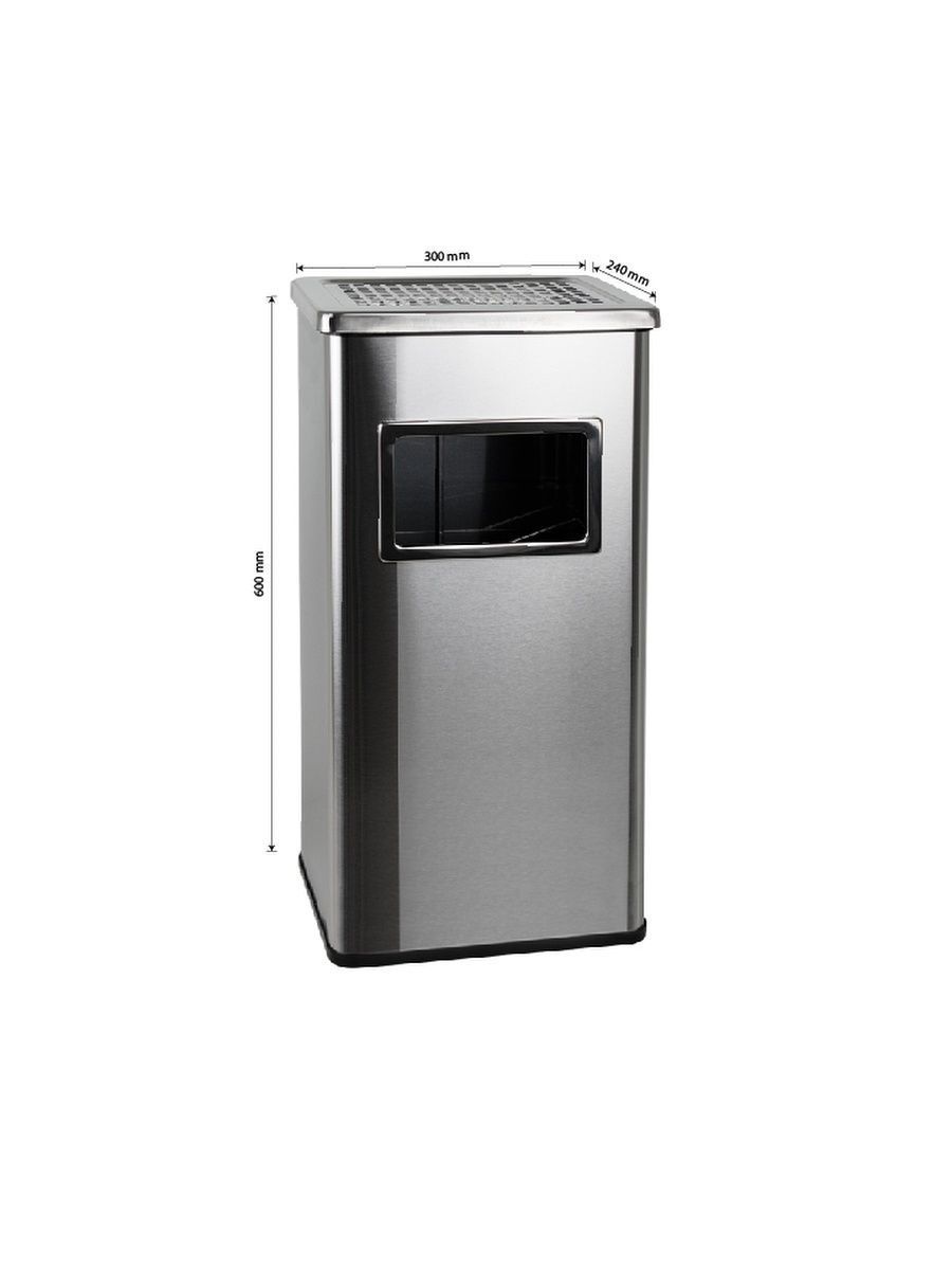 Урна с пепельницей квадратная, из нержавеющей стали SUS 410, цвет сатин. Верх состоит из съемной решетки с поддоном. Прочная и надежная для окурков и мелкого мусора идеально подходит для использования в офисах, общественных местах и других учреждениях. Изготовлена из нержавеющей стали и покрыта хромом. Благодаря большому объему в 40 л, способна вместить большое количество мусора. Легкость и компактность корзины позволяет перемещать её с одного места на другое. Габаритные размеры: высота 610 мм, ширина 300 мм, глубина 240 мм. Вес - 3,900 кг, объём - 0,05600 м3.