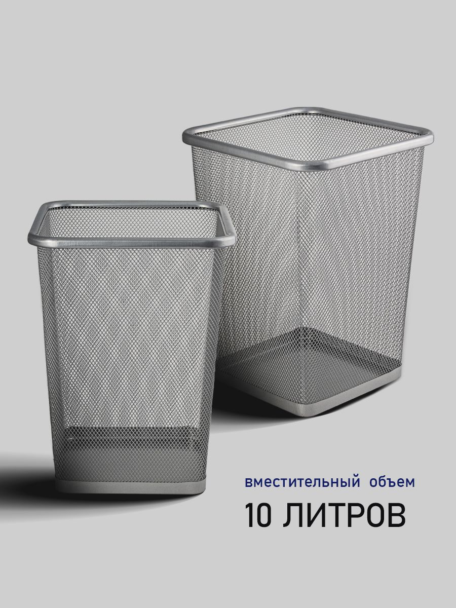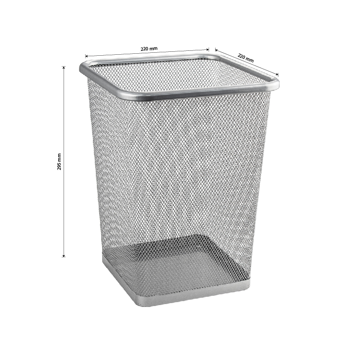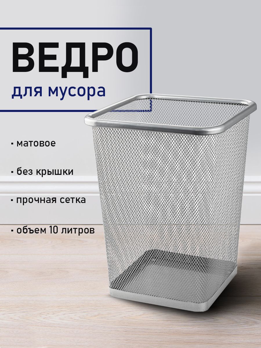 Ведро - корзина, квадратное, универсальное, 10 л, металлическое. Нержавеющая сталь SUS 410. Прочная и надежная сетчатая корзина для бумаг и мелкого мусора идеально подходит для использования в офисах, школах, различных учреждениях. Благодаря объему 10 литров способна вместить большое количество мусора. Габаритные размеры: высота 295 мм, ширина 220 мм, глубина 220 мм. Легкость и компактность корзины позволяет перемещать её с одного места на другое. Корзина удобно помещается под рабочим столом. Вес - 0,500 кг, объём - 0,00364 м3.