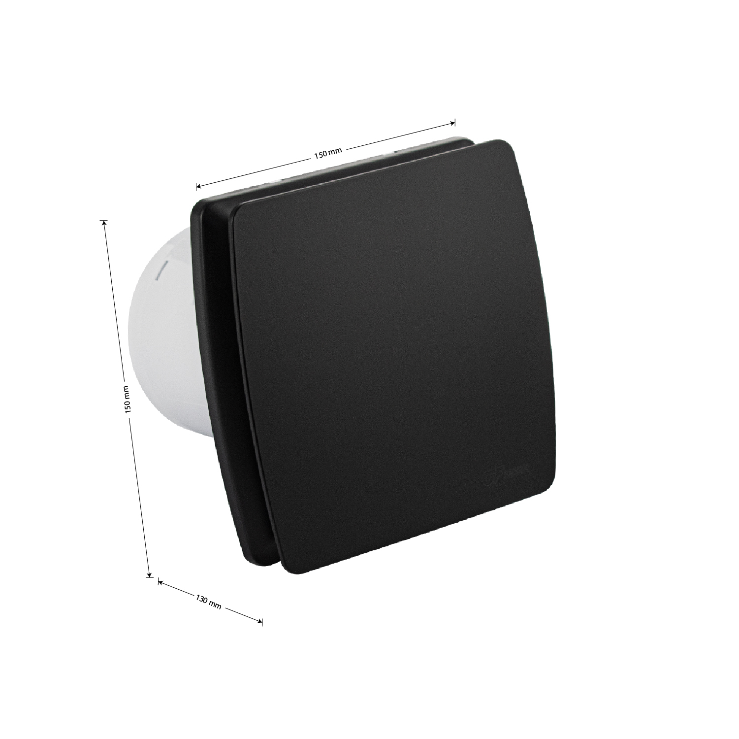 Вытяжной вентилятор для санузлов и различных бытовых помещений, черный, из высокопрочного пластика АБС, d = 100 мм, с обратным клапаном. Производительность 95 м3 / час, 34 Дб, 2400 об/мин, 12 Вт, IPX2, 50/60 Hz. Габаритные размеры: ширина 150 мм, высота 150 мм, глубина 130 мм. Вес - 0,670 кг, объем - 0,00391 м3.
