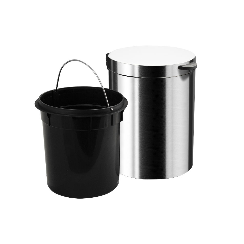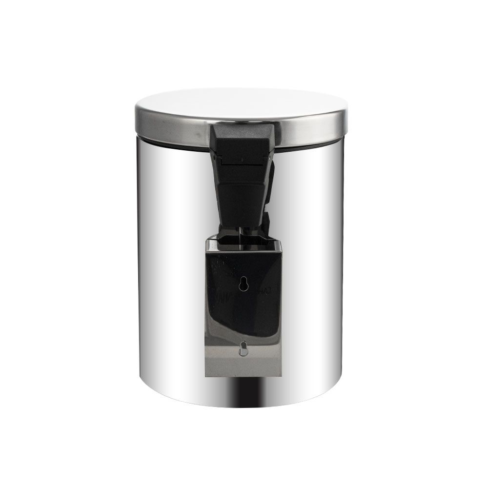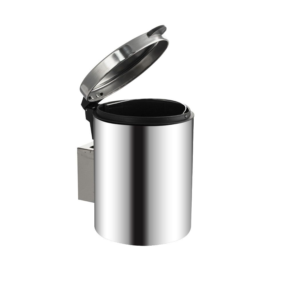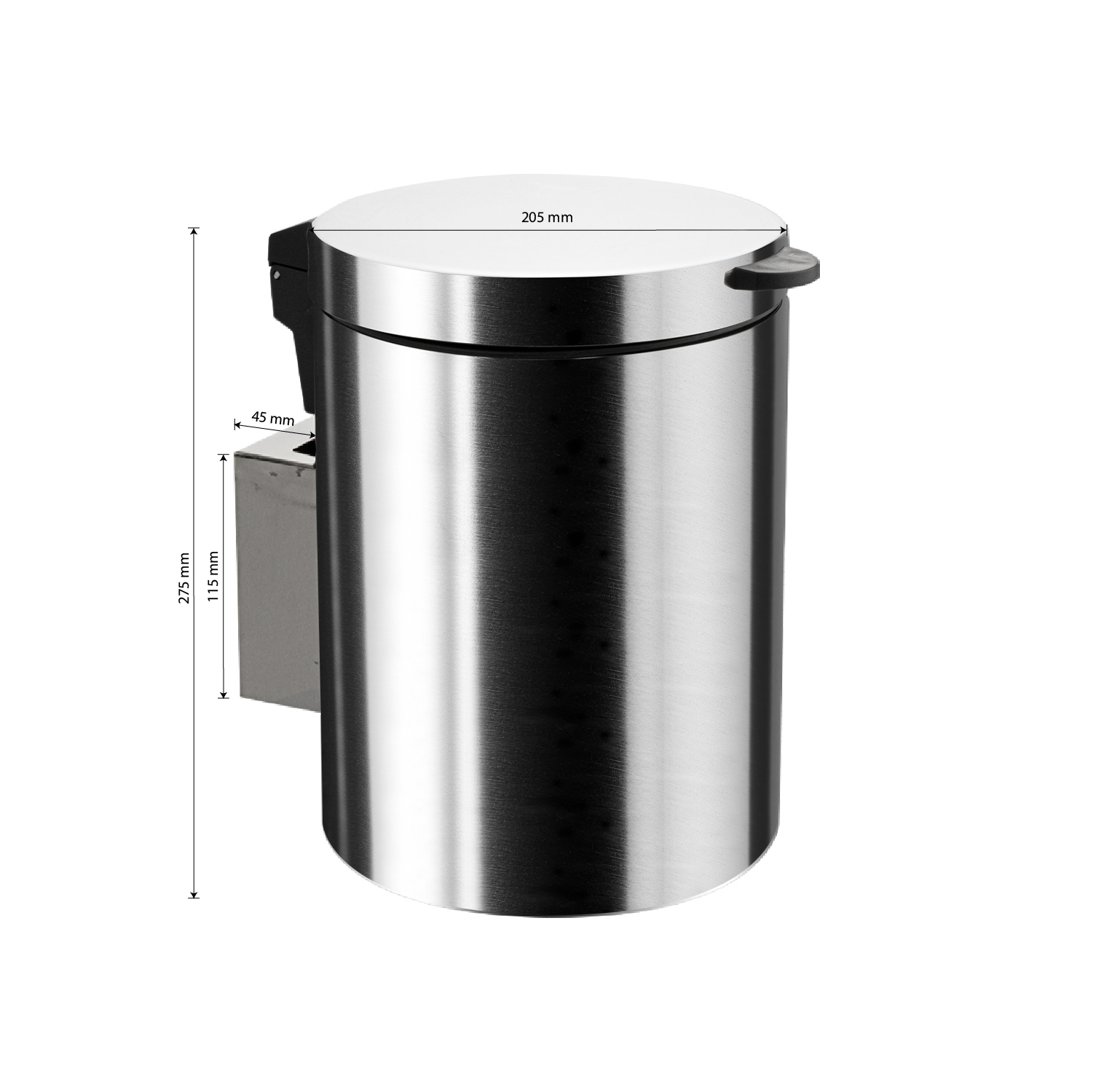Круглое хромированное ведро с ситемой закрывания крышки - микролифт, с настенным креплением, для хранения мусора с откидной крышкой прекрасно подойдет для ванной комнаты, туалета или кухни и офиса. Нержавеющая сталь SUS 410. Ведро оснащено пластиковым гигиеническим контейнером с металлической ручкой для переноса и плавным механизмом поднятия - опускание крышки. Объём ведра 5 литров. Отличное решение для утилизации мелкого бытового мусора. Наличие крышки обеспечивает защиту от неприятных запахов и распространения бактерий. Благодаря современному дизайну ведро впишется в интерьер любой кухни и ванной комнаты. Преимущества ведра для мусора с педалью - удобно устанавливается - изготовлено из устойчивой к коррозии нержавеющей стали с хромированным покрытием - пользоваться изделием удобно и гигиенично благодаря пластиковой ручке в крышке. Габаритные размеры: высота 275 мм, диаметр 205 мм. Вес - 1,000 кг, объём - 0,01640 м3.