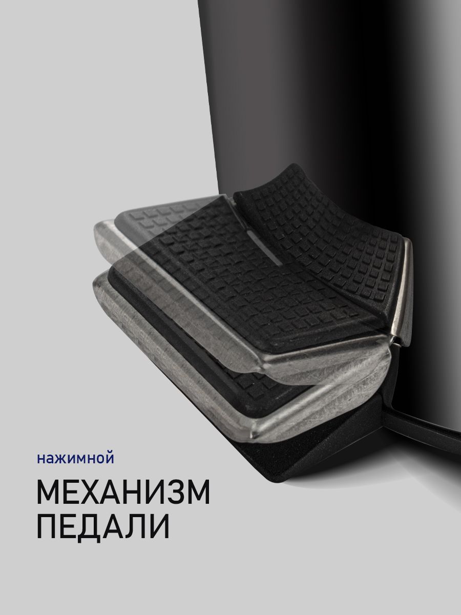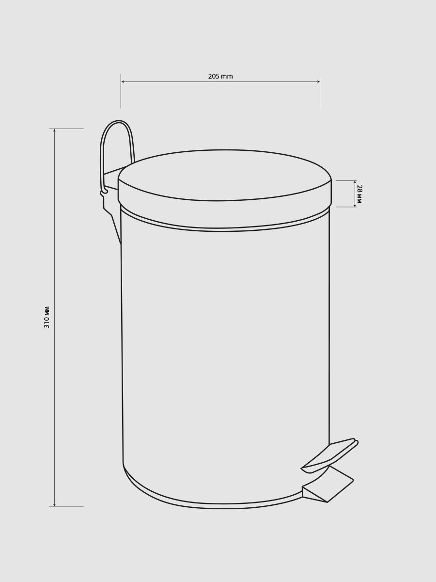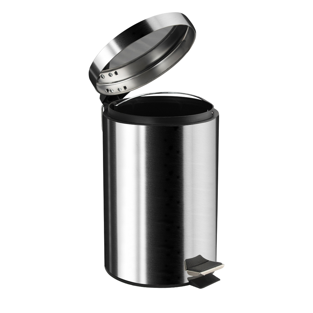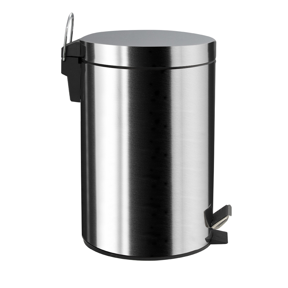 Круглое хромированное ведро для хранения мусора с педалью и откидной крышкой, прекрасно подойдет для ванной комнаты, туалета или кухни и офиса. Нержавеющая сталь SUS 410. Ведро оснащено пластиковым гигиеническим контейнером с металлической ручкой для переноса и механизмом поднятия крышки, при помощи нажатия на педаль. Объём ведра 7 литров. Отличное решение для утилизации мелкого бытового мусора. Наличие крышки обеспечивает защиту от неприятных запахов и распространения бактерий, а педальная система открывания позволяет не прикасаться к баку руками. Благодаря современному дизайну ведро впишется в интерьер любой кухни и ванной комнаты. Преимущества ведра для мусора с педалью: удобно устанавливается и перемещается на любое место; изготовлено из устойчивой к коррозии нержавеющей стали с хромированным покрытием; пользоваться изделием удобно и гигиенично благодаря педали в нижней части корпуса. Нескользящая пластиковая основа ведра предотвращает повреждение пола. Габаритные размеры: высота 310 мм, диаметр 205 мм.