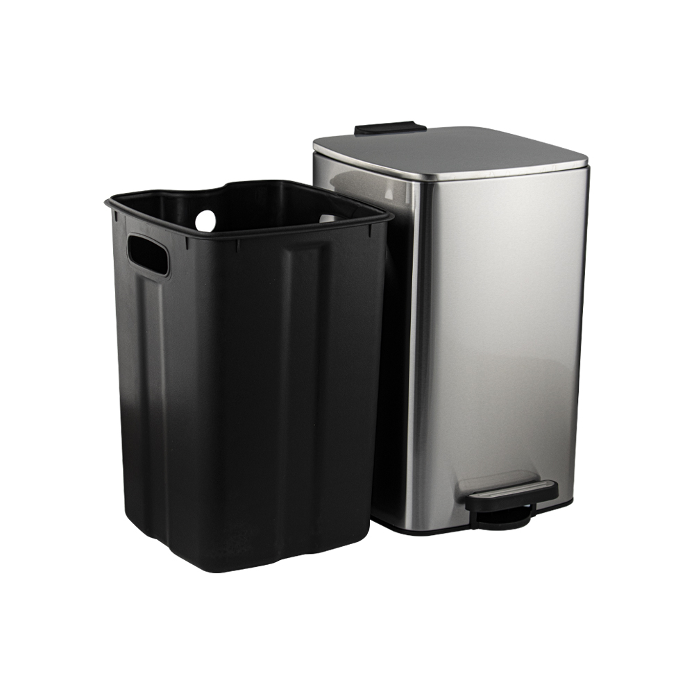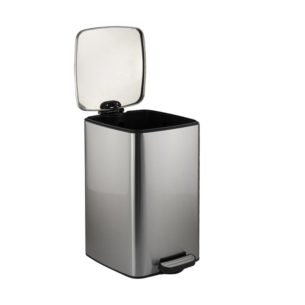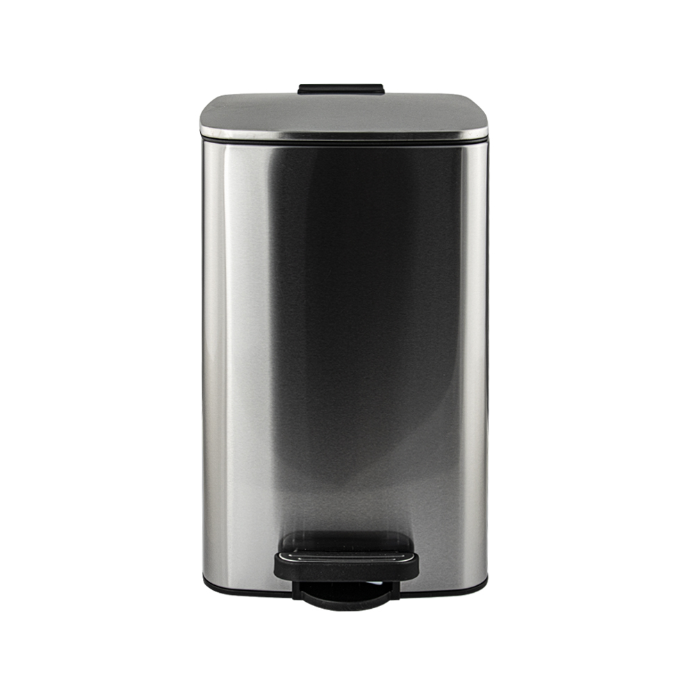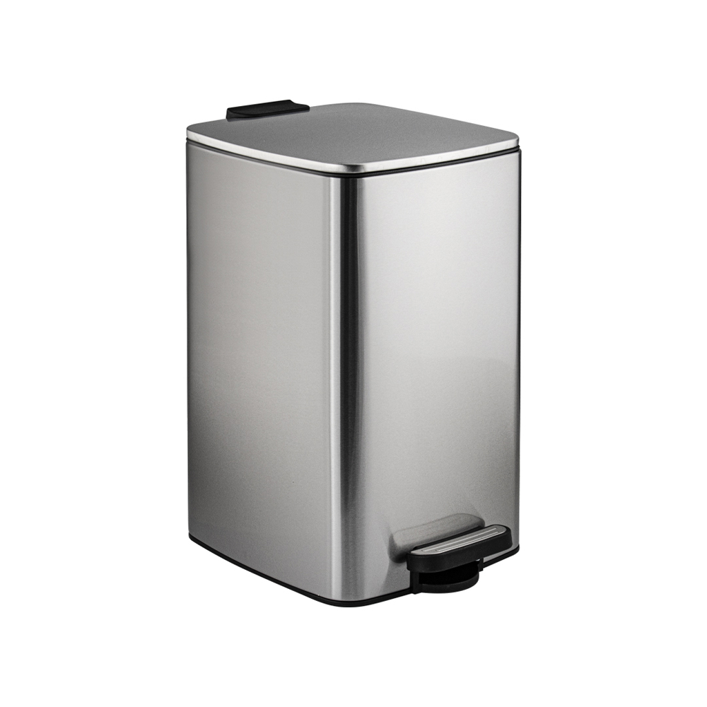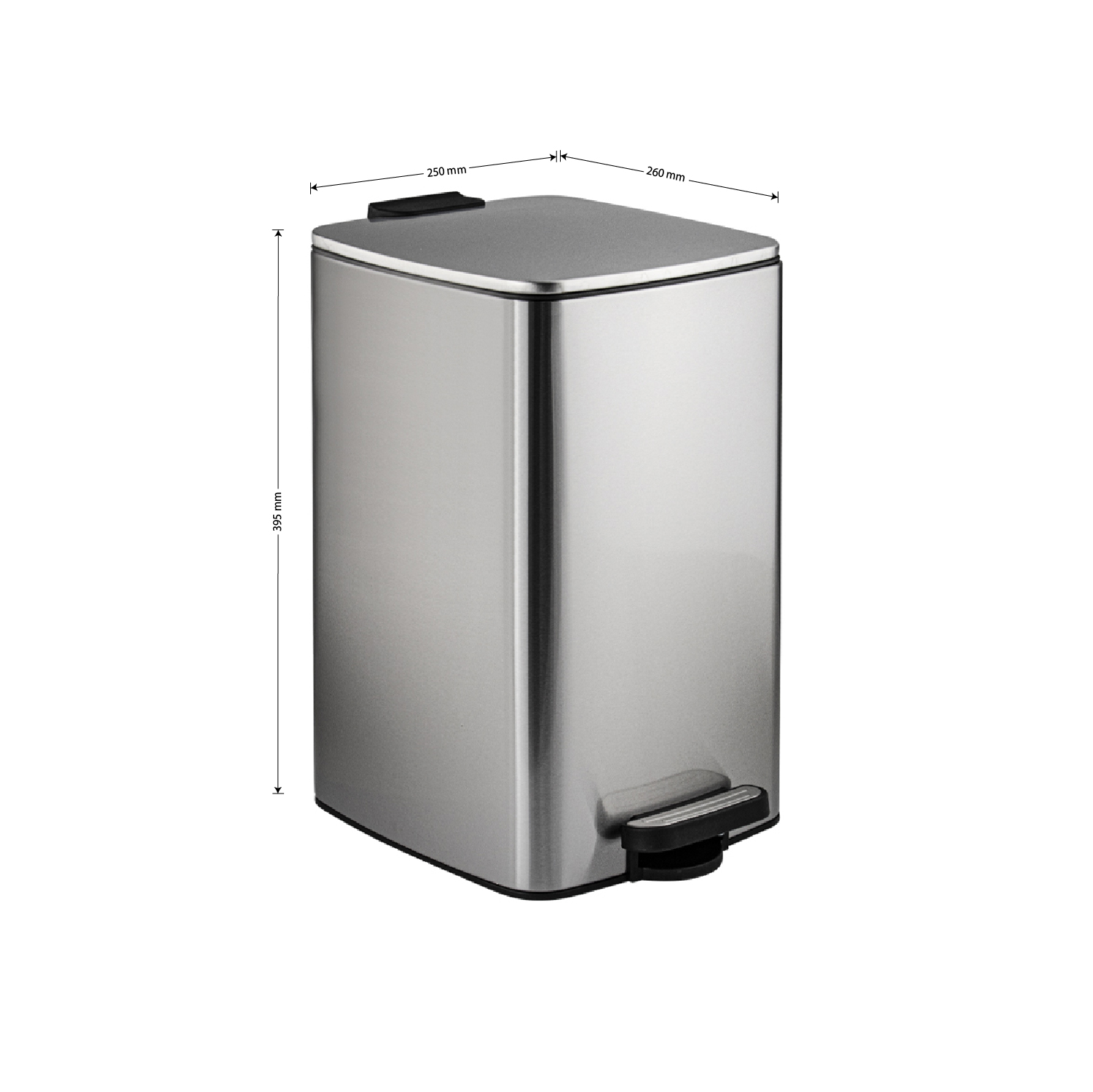 Ведро для мусора с педалью и откидной крышкой с функцией микролифт, прекрасно подойдет для ванной комнаты, туалета или кухни и офиса. Нержавеющая сталь SUS 410. Ведро оснащено пластиковым гигиеническим контейнером с металлической ручкой для переноса и механизмом поднятия крышки, при помощи нажатия на педаль. Объём ведра 16 литров. Отличное решение для утилизации мелкого бытового мусора. Наличие крышки обеспечивает защиту от неприятных запахов и распространения бактерий, а педальная система открывания позволяет не прикасаться к баку руками. Благодаря современному дизайну ведро впишется в интерьер любой кухни и ванной комнаты. Преимущества ведра для мусора с педалью: удобно устанавливается и перемещается на любое место; изготовлено из устойчивой к коррозии нержавеющей стали матового цвета; пользоваться изделием удобно и гигиенично благодаря педали в нижней части корпуса. Нескользящая пластиковая основа ведра предотвращает повреждение пола. Габаритные размеры: высота 395 мм, ширина 250 мм, длина 260 мм. Вес - 2.
