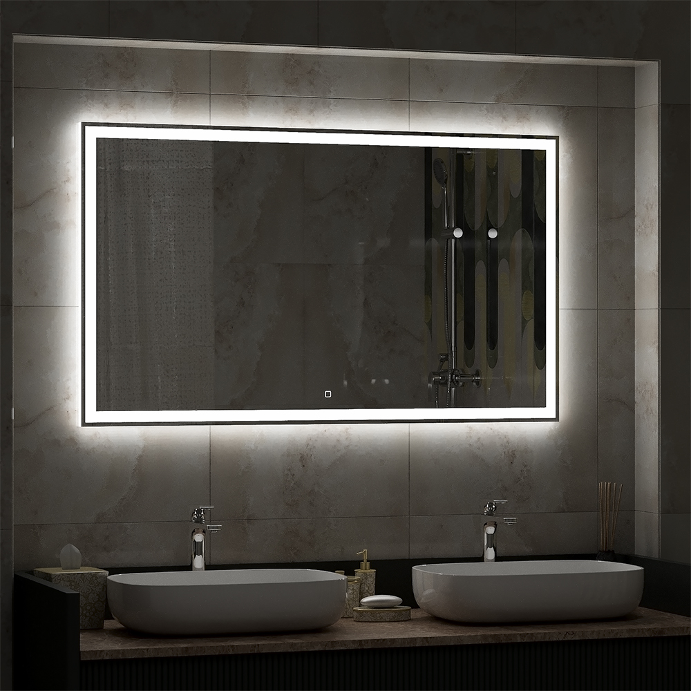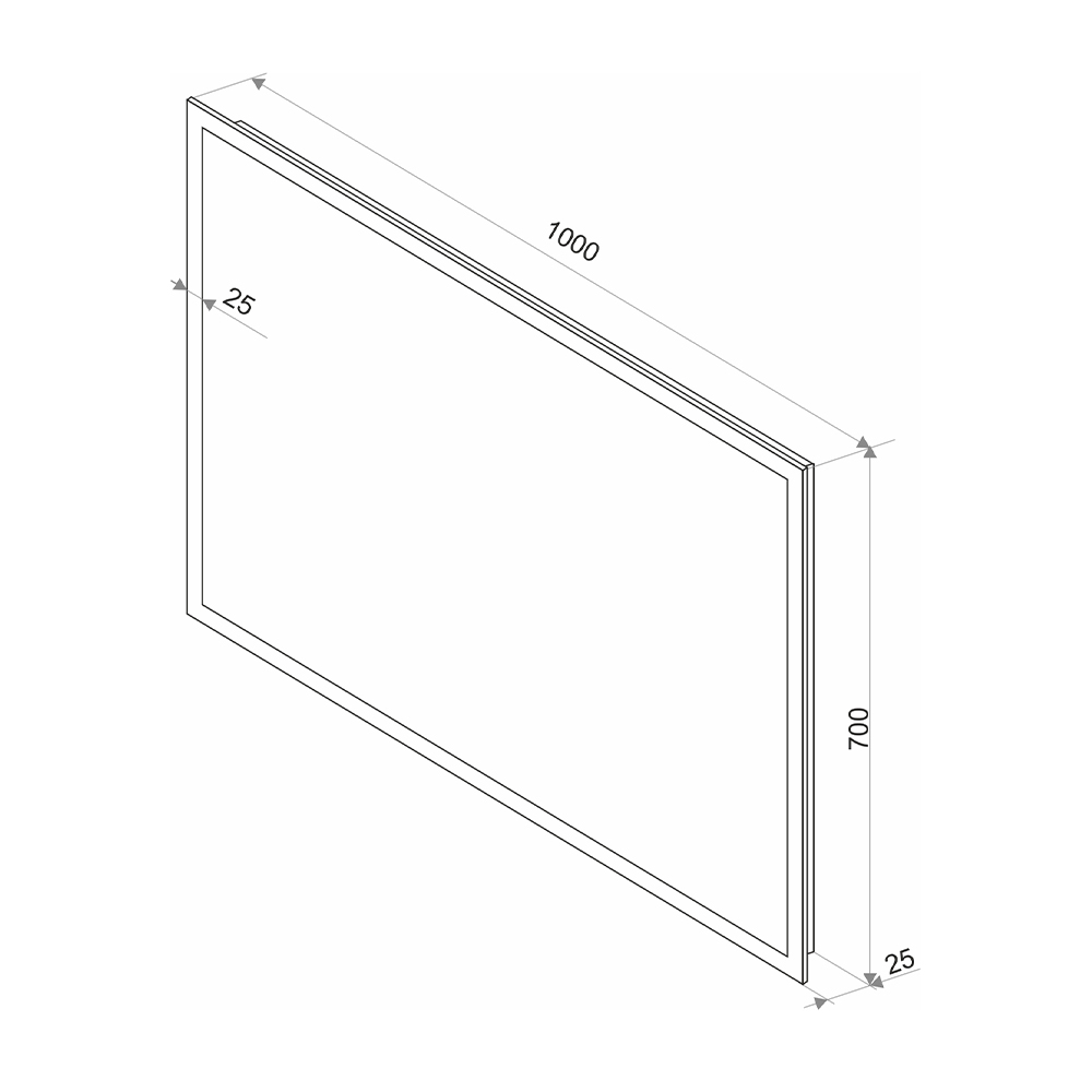 Зеркало с внутренней LED подсветкой, прямоугольное, сенсорное, с пескоструйной обработкой, изготовлено из влагостойкого зеркального полотна толщиной 4 мм производства AGC GLASS EUROPE. Корпус изготовлен из высокопрочного пластика АБС. Источник света скрыт за зеркальной поверхностью, световое зеркало представляет собой идеальное сочетание стеклянной поверхности и глубокой игры света. Край полотна обработан для защиты от порезов при контакте. Питание от сети 220В, сенсорный выключатель, температура свечения LED - 6000К, светодиоды - 2835 (120), 220 V / 50 Hz. Управление подсветкой осуществляется сенсорным выключателем. Срок службы диодов - 30000 часов. LED подсветка зеркала имеет нейтральный оттенок белого свечения. Изделие прошло обязательную сертификацию и может использоваться в помещениях с повышенной влажностью воздуха. В комплект поставки входит крепеж. Габаритные размеры: высота 700 мм, ширина 1000 мм. Вес - 9,700 кг, объём - 0,03937 м3.